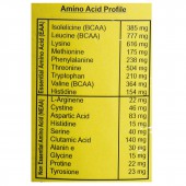 Isolelicine (BCAA): 385 mg, Leucine (BCAA): 777 mg, Lysine: 616 mg, Methionine: 175 mg, Phenylalanine: 238 mg, Threonine: 504 mg, Tryptophan: 210 mg, Valine (BCAA): 364 mg, Histidine: 154 mg.