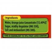 Ingredients:- Water, orange juice concentrate (12.45%), sugar, vitamins, acidity regulator (INS 330) and salt.
