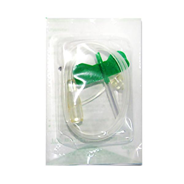 A winged infusion set or scalp vein set is a device specialized for venipuncture: i.e for accessing asuperficial vein for either intravenous injection or phlebotomy. It consists, from front to rear, of a hypodermic needle, two bilateral flexible "wings", flexible small-bore transparent tubing and lastly a connector Luer. The two wings ensure easy and secure positioning on the skin. This connector attaches to another device: e.g. syringe, vacuum tube holder/hub, or extension tubing from an infusion pump or gravity-fed infusion / transfusion-bag / bottle.