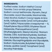 Purified water, Sodium Methyl Cocoyl Taurate, Coco amido propyl Betaine, Sodium cocoyl Isethionate, Glycerin, Decyl Glucoside, Lauryl Glucoside, Niacinamide, Cetyl Alcohol, Sodium Cocoyl Apple Amino Acids, Xylitylglucoside (and) Anhydroxylitol (and) Xylitol, Polyacrylate crosspolymer-6, Polyethylene Glycol 6000, Ethylene Glycol Distearate, Phenoxyethanol (and) Ethylhexylglycerin, Stearyl Alcohol, Titanium Dioxide, Citric Acid Monohydrate, Xanthan Gum, Butylated Hydroxy Tolune, Disodium Edetate, Glycosphingolipids and Glycolipids, Sodium Hyaluronate, Butylated Hydroxy Anisole, Lecithin (and) Tocopherol (and) Ascorbyl Palmitate