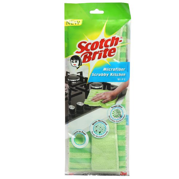The Scotch-Brite Scrubby Kitchen Wipe can be used to scrub and wipe your kitchen counter . The scrubby surface removes stains without scratching the surface and makes cleaning effortless, microfiber construction lifts and trap dust and absorbs water better than normal cloth.