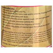 Quick action against Cold and Flu. Prevents symptoms like runny nose and/or sneezing, Coughing, Sore throat, head and body aches along with fever. Boosts up the immunity power against cough, cold and various allergic problems (eg. sinusitis, bronchial asthma etc). Also very effective to reduce the frequency of illness. Enhances the killing ability of macrophages that protects the body from microbial attack. Reduces fatigue and laziness in the body and makes you feel lighter and healthier.