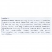 Lemon and Orange Flavour: Bulking agent [INS 965 (ii)], Tricalcium Phosphate, Purified Water, Sweetener [INS 420(i)], Gelling Agent [INS 440 and INS 406], Nature-Identical flavouring substance (Lemon), Natural flavouring Substances-Multisense Sweetener, Nature-identical flavouring Substances (Orange), Acidity Regulator [INS 330], Cholecalciferol, Acidity Regulator [INS 331(iii)], Preservative [INS 202], Synthetic Colour [INS 110, INS 102], Glazing agent [INS 903].