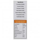 Coriander(30%), Cumin(25%), Turmeric(15%), Red Chilli(10%), Garam Masala(10%), Fenugreek(5%, Asafoetida(5%)