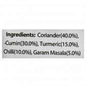 Coriander(40%), Cumin(30%), Turmeric(15%), Chilli(10%), Garam Masala(5%)