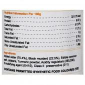Added water (70.4%), Black mustard (22.5%), edible common salt, Jaljeera, Turmeric powder, acidity regulators (260, 330), emulsifying agent (E415), class II preservative (211)