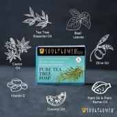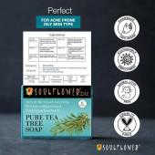 - Soulflower pure tea tree soap has natural properties of pure tea tree essential oil. A minty odour: tea tree soap is known to have a very strong, invigorating and minty smell.; A safe and secure soap for your skin: this soap is 100 percent pure, natural, vegan, handmade and cold processed, which is also free from sls, chemicals, synthetic colour or fragrance