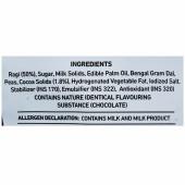 Ingredients- Ragi (50%), Bengal Gram Dal, Palm oil, Peas, Milk solids, Cocoa Solids (3%), Palmolien oil, Iodized Salt, Sugar, Stabilizer (170), Emulsifier (INS 322), Antioxidant (INS 320). CONTAINS ADDED FLAVOUR (NATURE IDENTICAL FLAVOURING SUBSTANCE-CHOCOLATE)