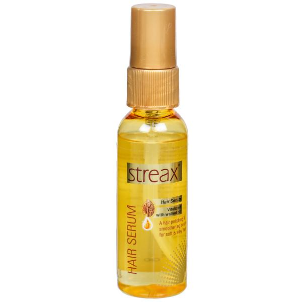 Streax Hair Serum With Walnut Oil enriched with the natural goodness of walnut oil and vitamin E so that you Shine All Day with silky-smooth, frizz-free, polished & shiny hair.
