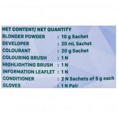 Number of Contents in a Sales Package - 1N Blonder Powder 10 g, 1N Developer 20 ml, 1N Colourant 20 g, 1N Colouring Brush, 1N Highlighting Brush, 1N Information Leaflet, 2N Conditioner 5 g each, 1 Pair Gloves