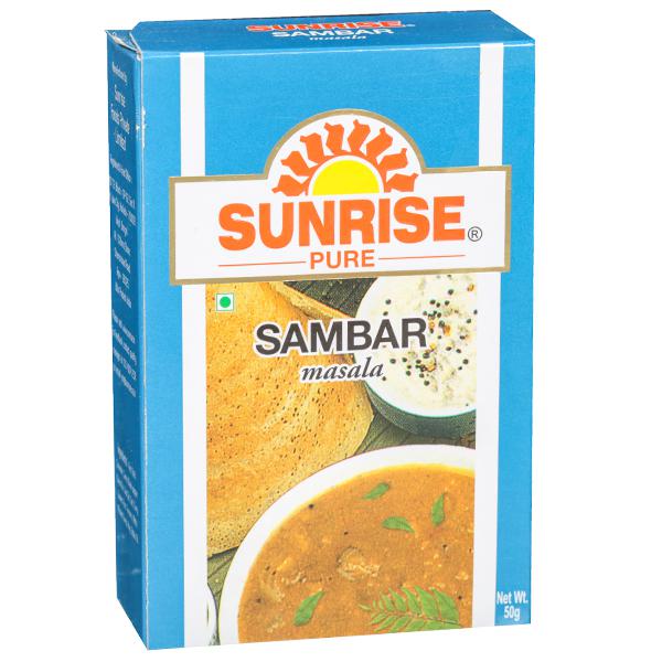 About product: Sunrise Sambhar Masala Powder is available in different quantity packages that include Sachet, 50g, 100g The Sambhar Masala is made from fine quality are grounded and processed with our advanced grinders. We ensure that you get the authentic flavor of finest and Testy in the Sunrise Sambhar Masala.