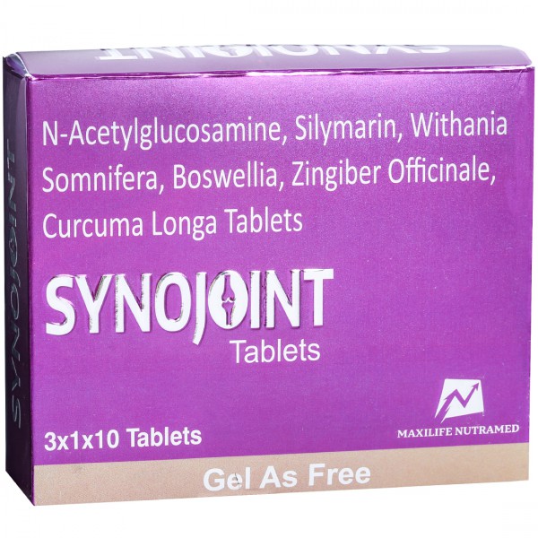 Synojoint Tablet is a nutraceutical supplement, enriched with N-Acetylglucosamine, Silymarin, Withania Somnifera, Boswellia, Zingiber Officinale, Curcuma Longa.