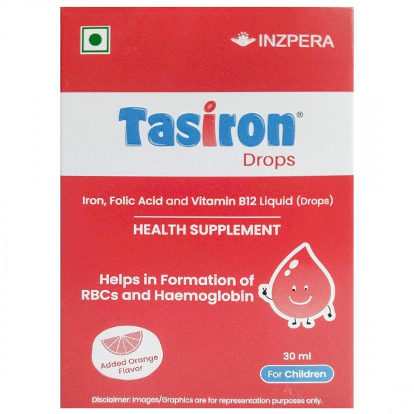 Tasiron Orange Flavour Drops is ahealth supplement, enriched with Iron, Folic acid & Vitamin B12.This ingredients helps in formation of RBCS and haemoglobin.