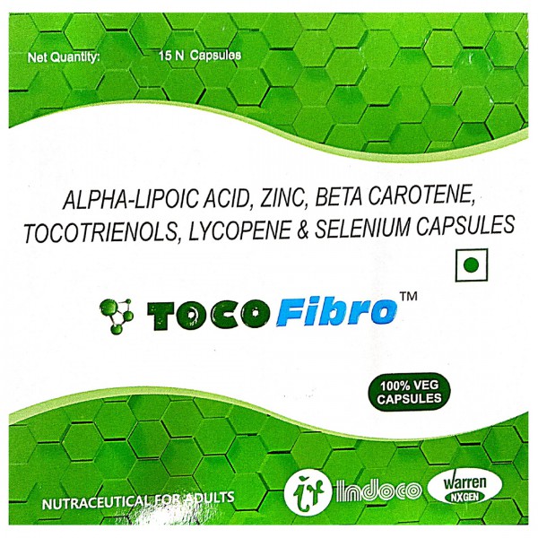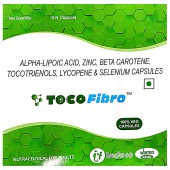 Toco Fibro Veg Capsule is a nutraceutical supplement. It is enriched with Alpha-Lipoic Acid, Zinc, Beta Carotene, Tocotrienols, Lycopene & Selenium.