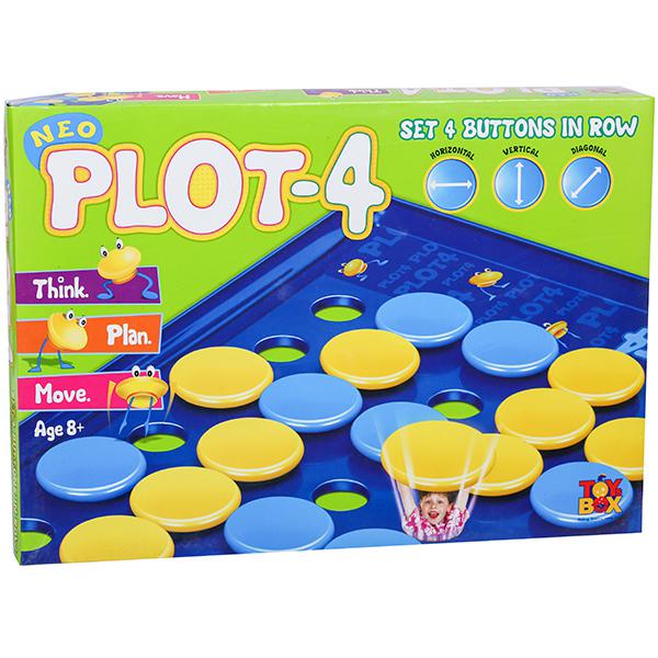 1) Game Includes 21 Blue Buttons,21 yellow Buttons ,1 Pc. Playing Board.2) Challenge a friend to disc-dropping fun with the classic game of Plot 4!