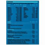 Vitamin A: 600 mcg, Vitamin B1: 1.2 mg, Vitamin B2: 1.4 mg, Vitamin B3: 16 mg, Vitamin B5: 5 mg, Vitamin B6: 2 mg, Folic acid (B9): 120 mcg, Vitamin B12: 1 mcg, Vitamin C: 40 mg, Vitamin D: 10 mcg, Vitamin E: 10 mg, Vitamin K: 55 mcg, Biotin: 30 mcg