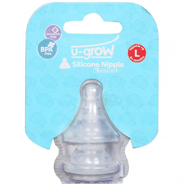 U Grow Wide Neck Silicone Nipple is made of soft silicone and is free from BPA and Phthalate, making it safe for babies from 6+ months. It fits normal neck bottles and gives a natural, comfortable feeding experience.
