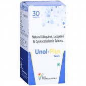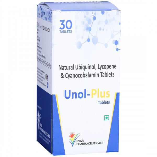 Unol Plus Tablet is a nutritional health supplement, enriched with natural Ubiquuinol, Lycopene and Cyanocobalamine.