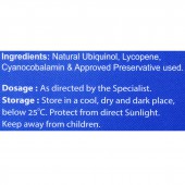 Natural Ubiquuinol, Lycopene and Cyanocobalamine & Approved preservative used.