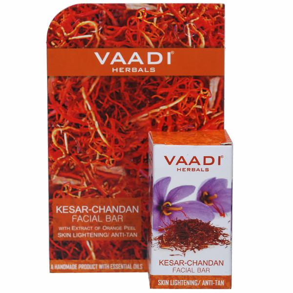 Vaadi Herbals Kesar Chandan Skin Lighteing Anti Tan Facial Bar is a rich combination of Kesar, Chandan along with Orange peel is guaranteed to improve your skin complexion and smoothen the texture.
