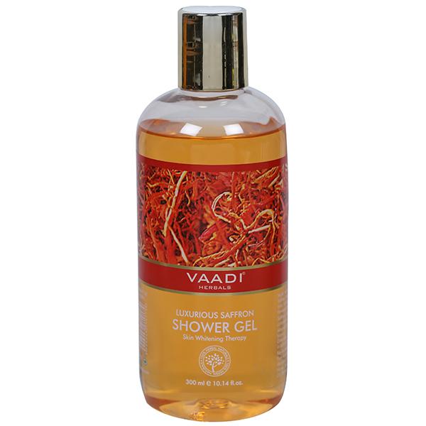 Vaadi Herbals Luxurious Saffron Shower Gel made with multi-mineral-rich content of luxurious Saffron, this shower gel lightens and improves skin tone, while cleansing pore-deep impurities. It gradually reduces pigmentation marks and gives a fairer and flawless complexion.