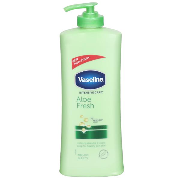 Vaseline Intensive Care Body Aloe Fresh Lotion contains 100% pure aloe vera extracts and microdroplets of Vaseline jelly. It restores the skin’s moisture and helps maintain 24-hour hydration in the skin. It helps to rejuvenate dry skin even in harsh summers. It is a light lotion that absorbs fast for a non-greasy and non-sticky feel.