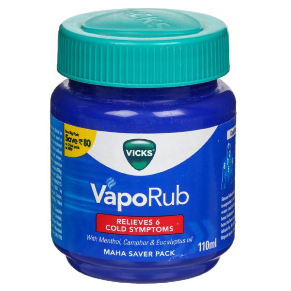 Vicks Vaporub contains natural ingredients that provide effective multi-symptom relief from cold symptoms. When applied on the chest and throat, relieves cough and cold due to minor throat infections associated with the common cold.