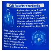 Apply on chest, throat & back for relief from 6 cough & cold symptoms: breathing difficulty, body ache, cough, blocked nose, headache & muscular stiffness. Start feeling relief in 5 minutes from cough, blocked nose, & breathing difficulty.