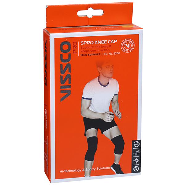 Vissco Pro Spro Knee Cap provides stability to the knee, reduces pain and prevents injury, provides compression and warmth to the knee, reduces pressure on the patella, improves knee joint function.