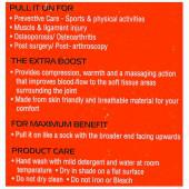 The elasticated knee cap provides compression, warmth and improves blood flow to the soft tissue areas surrounding the joint. The opening for the patella reduces the pressure on the patella and allows for greater stability. It is lightweight, breathable and comfortable and ensures improved therapeutic results. The knee cap consists of blended yarns and cotton which makes the product skin friendly. The fabric releases sweat and permits airflow, while its ergonomic design ensures a two way stretch.