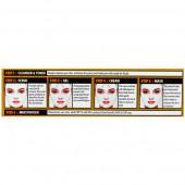 - Mask: This peel-off mask with Gold leaf & lemon peel extracts removes dead cells & helps to maintain the skin's pH balance.