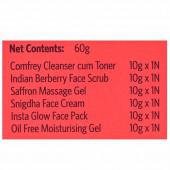 Number of Contents in a Sales Package - 1N Comfrey Cleanser cum Toner 10 g, 1N Indian Berberry Face Scrub 10 g, 1N saffron Massage Gel 10 g, 1N Snigdha Face Cream 10 g, 1N Insta Glow Face Pack 10 g, 1N Oil Free Moisturizing Gel 10 g