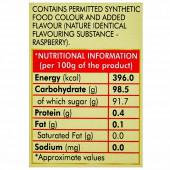 Ingredients- Sugar, acid INS 297, acidipty regulator INS 332, nature identical and artificial flavouring substance-Raspberry flavour colour - INS 110.