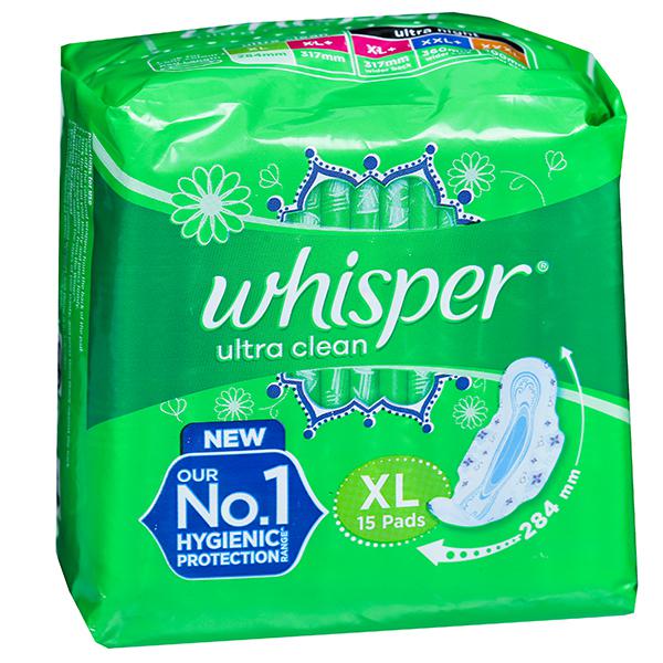 - Use whisper ultra clean XL+ for days when your period flow is heavy vs an ordinary pad