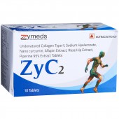Zyc2 Tablet is a nutraceutical supplement, enriched with undenatured collagen type II, sodium hyaluronate, nano curcumin, aflapin extract, rose hip extract, piperine 95% extract.
